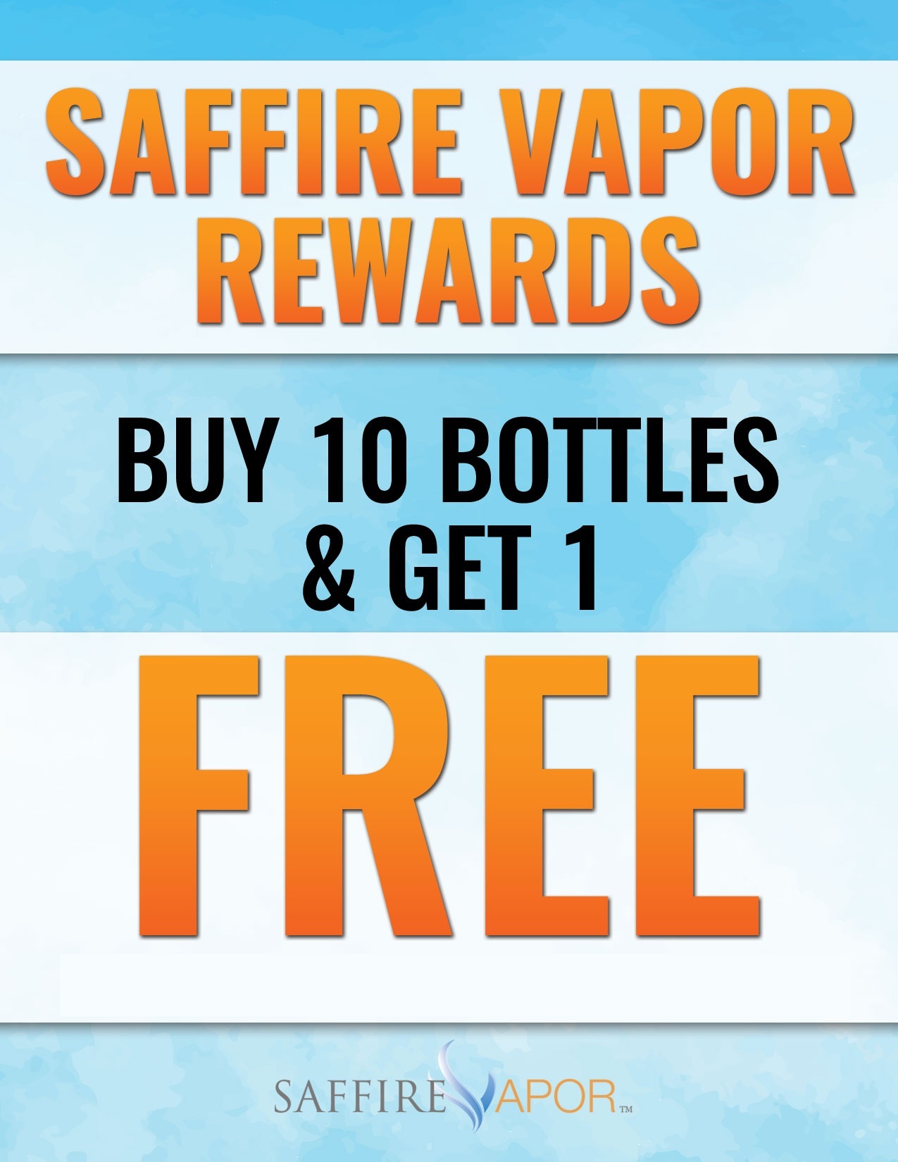 Purchasing any Saffire E-Liquid earns a bottle reward point. After you accumulate 10, you get a FREEBIE!